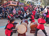 2月1日(日)、大歳神社で節分祭が開かれました。 肌寒さもほどほどの好天気に恵まれて、大勢の人々が集まりました。 14時からの神事の後、小学生による井口浄大鼓が披露され、次いで、井口高校弓道部による弓引き神事が執り行われ、盛り上がりを見せる中、いよいよ豆まきが始まりました。 神社関係の方々が撒き手となり、一斉に袋に入った豆がまかれました。 縁起の豆さんが、手を差し伸べる大勢の方々に行き渡っていました。
